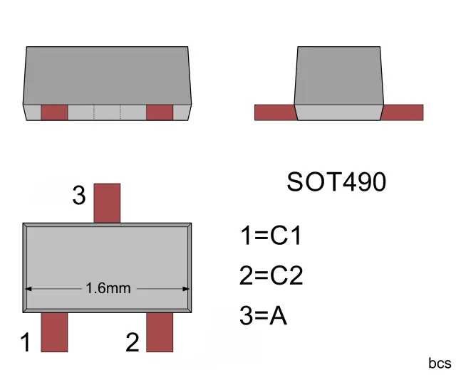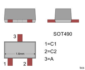 the 1PS89SS06 is a silicon common diode, Ur = 80V, I = 0.2A, applications: high speed switching, common anode, dual diode