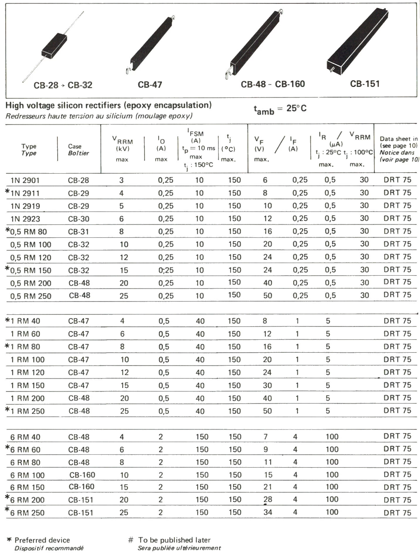 the 6RM100 is a high voltage silicon rectifier, U=10kV, I=2A, epoxy encapsulated