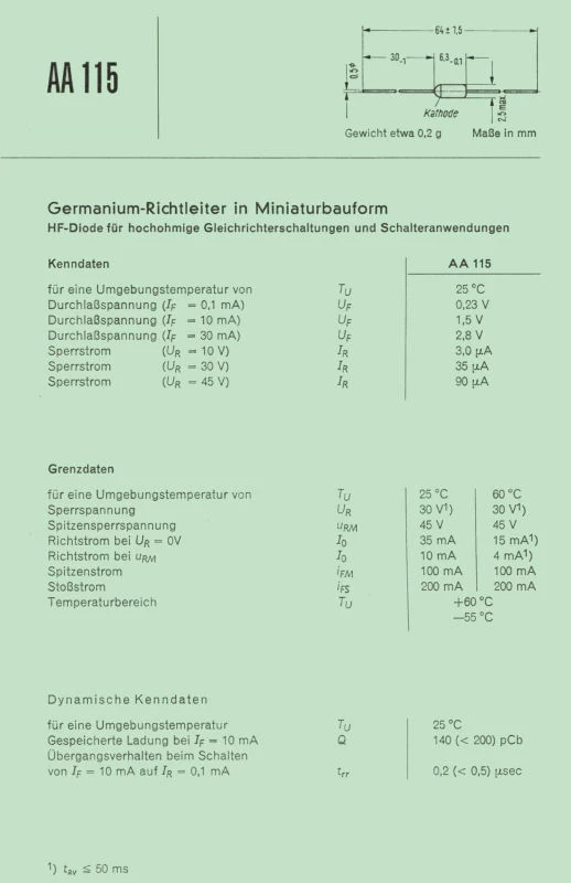 the AA115 is a germanium miniature diode preferred for HF rectifier and switch applications