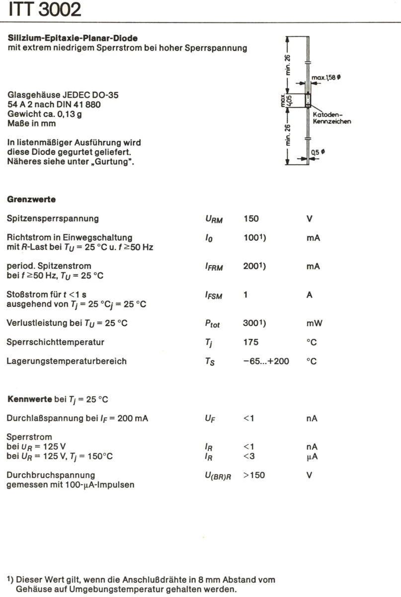 the ITT3002 is a silicon diode preferred for use in general purpose applications