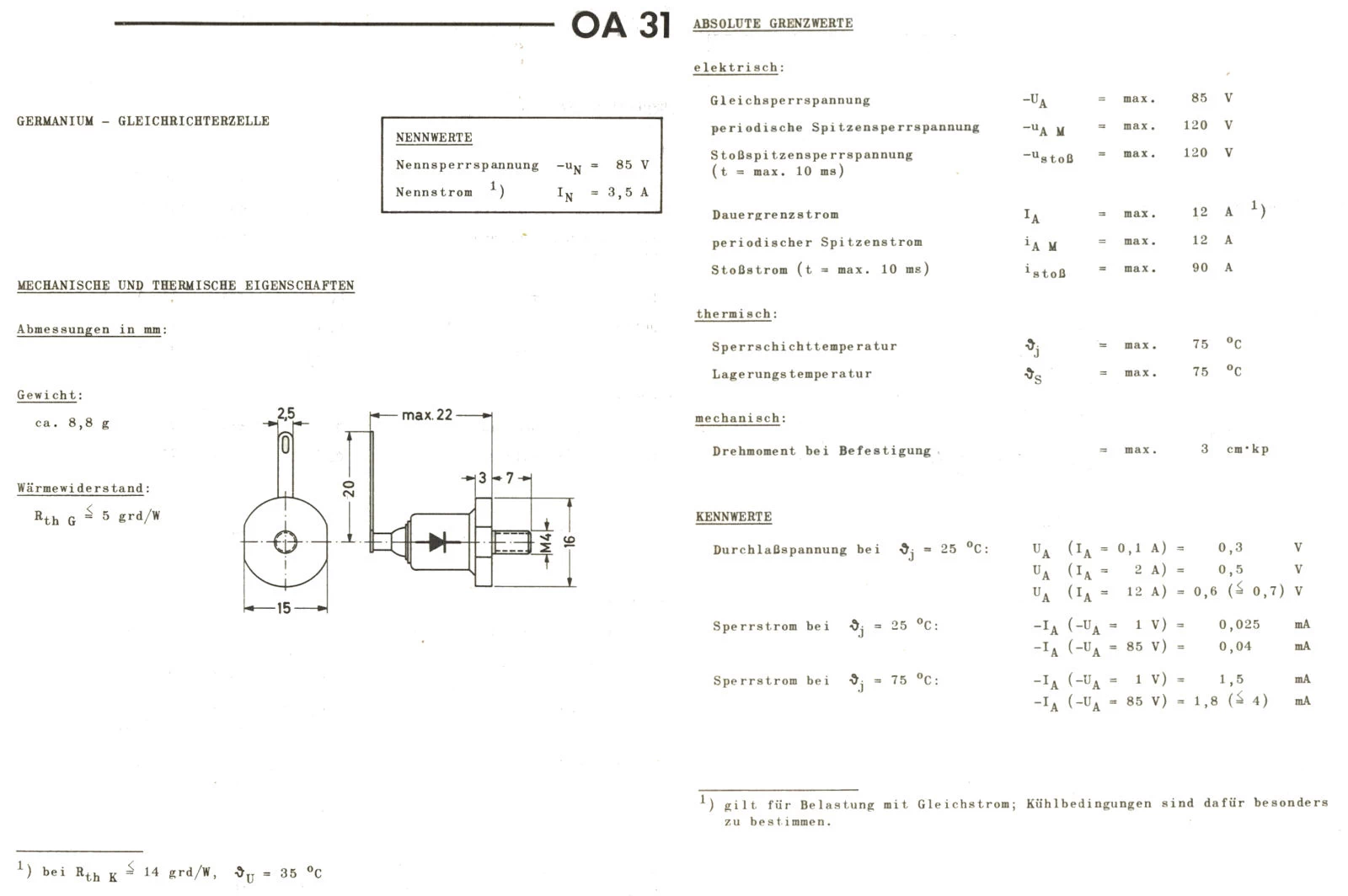 the OA31 is a germanium high current rectifier preferred for general purpose applications