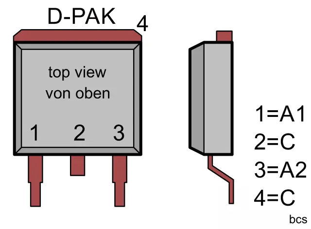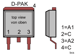 the 6CWQ03F is a silicon schottky diode, Ur = 30V, I = 6.6A, applications: SMPS, battery charging, converter, free wheeling, reverse battery protection, common cathode, dual diode