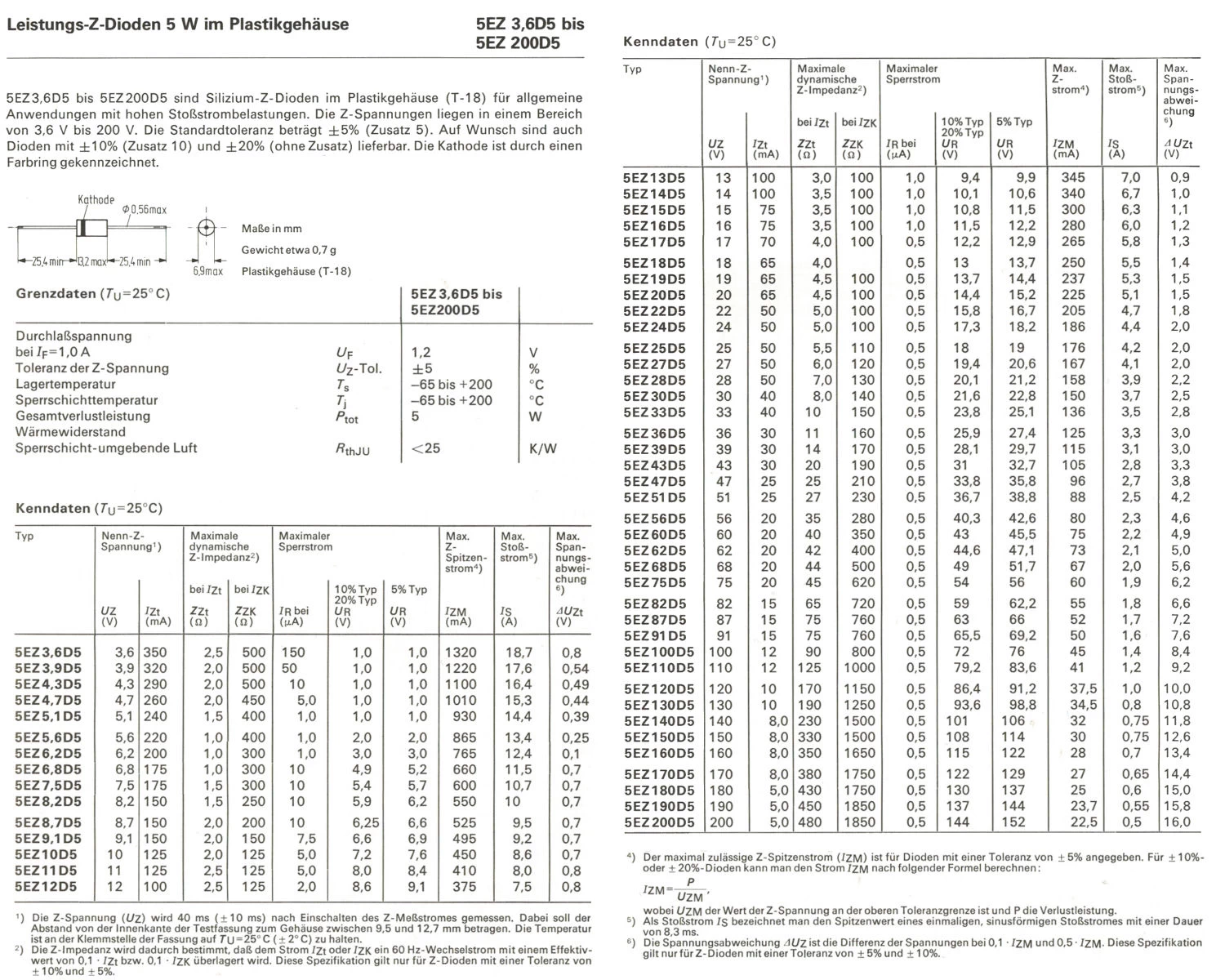 the 5EZ3,6D5 is a silicon Z - diode preferred for use in general purpose applications with high peak current load