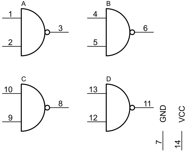 the SF.C401HE is a ttl quadruple 2 input nand gate, open collector out (7401) high speed series