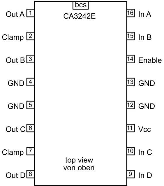 the CA3242E is a quad-gated inverting power driver for interfacing low-level logic to high current loads
