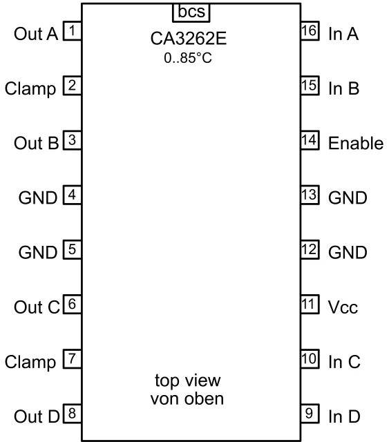 der CA3262E ist ein 4-fach Leistungstreiber als Anpassung für low-level Logikschaltungen an Leistungsstufen