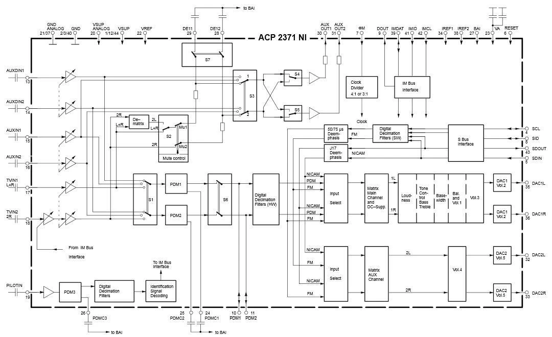 the audio processor ACP2371NI comprises two components-an A/D converter (ADC) and an audio processor unit (APU) implemented in CMOS (ADC) and NMOS (APU) technology