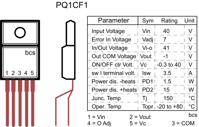 the PQ1CF1 is a chopper regulator with maximum input voltage +40V and 3.5A output current