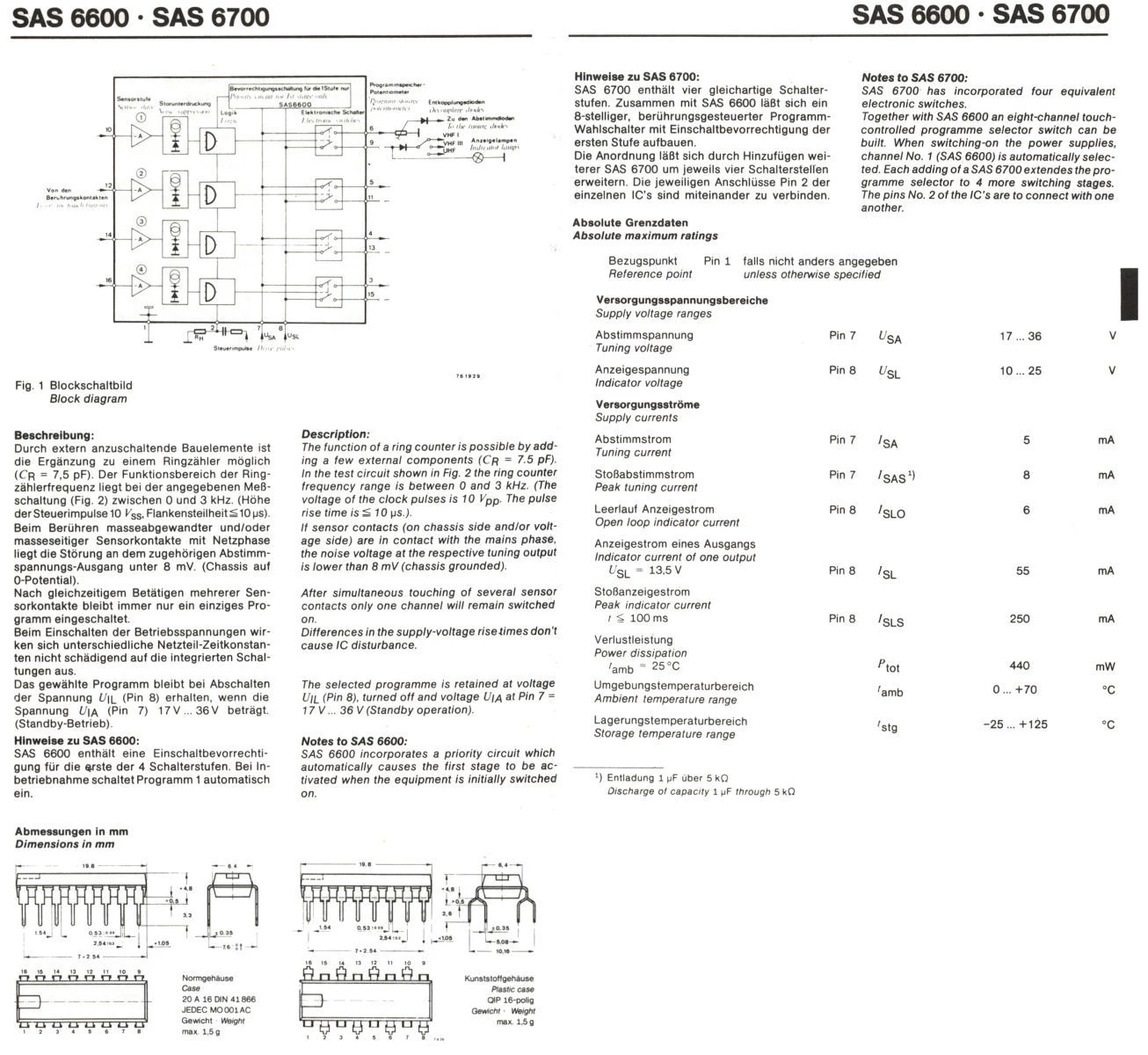 the SAS6700 is an electronic touch plate (touch driven quadruple switch unit) for program selection of radio and television receivers, lift controls, test equipment etc.