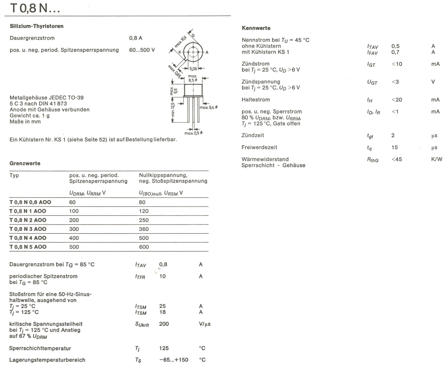 the T0,8N0,6A00 is a silicon Thyristor, U = 60V, I = 800mA