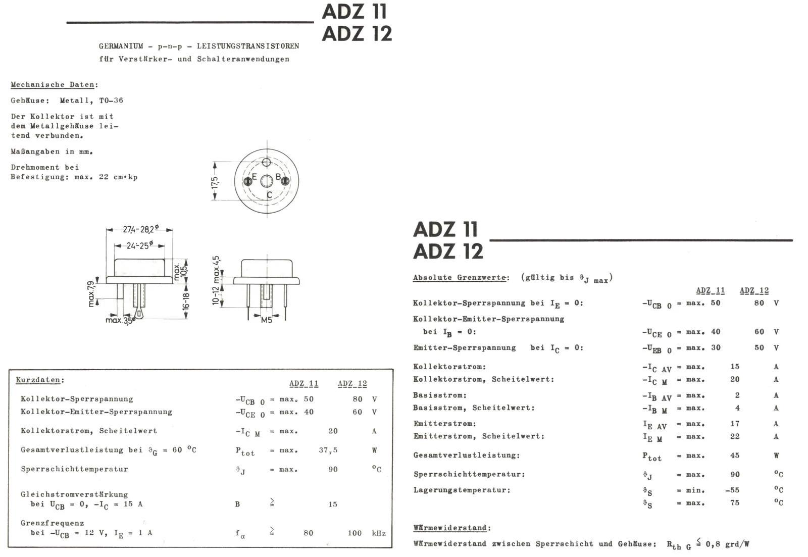 the ADZ12 is a germanium PNP power transistor preferred for use in general purpose amplifier and switching applications, collector is connected to case