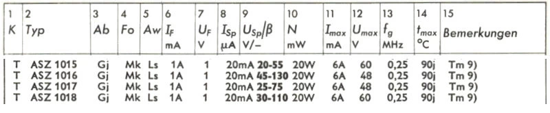 the ASZ1018 is a germanium PNP transistor, Uce = 60V, Ic = 6A