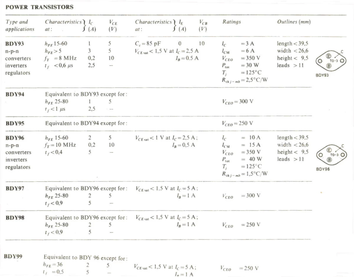the BDY99 is a silicon NPN transistor preferred for use in converter and regulator applications