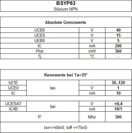 the BSYP63 is a silicon NPN transistor, Uce = 15V, Ic = 200mA, applications: switch